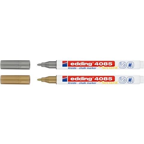 Mit der dünnen Schriftbreite des Edding 4085 können Akzente gesetzt und kleine Flächen beschriftet werden. Weitere Strichbreiten sind als edding 4090 und edding 4095 Kreidemarker verfügbar.
