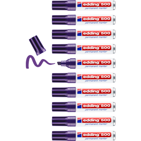 Die Permanenttinte ist schnell trocknend, geruchsarm, wasserfest und lichtbeständig. Der edding 500 ist die perfekte Lösung für viele Materialien wie Metall, Kunststoff, Glas oder Karton.