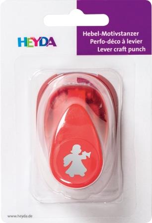 Heyda Motivstanzer klein Engel zum Gestalten von Karten, Basteln mit Papier sowie zum Herstellen von Streuteilen. Motivgröße 17 mm, geschützte Schneidezone, Stanzteile werden im Schiebefach aufgefangen, einfache Anwendung, geeignet für Karton 80-220 g/m², Blisterverpackung.